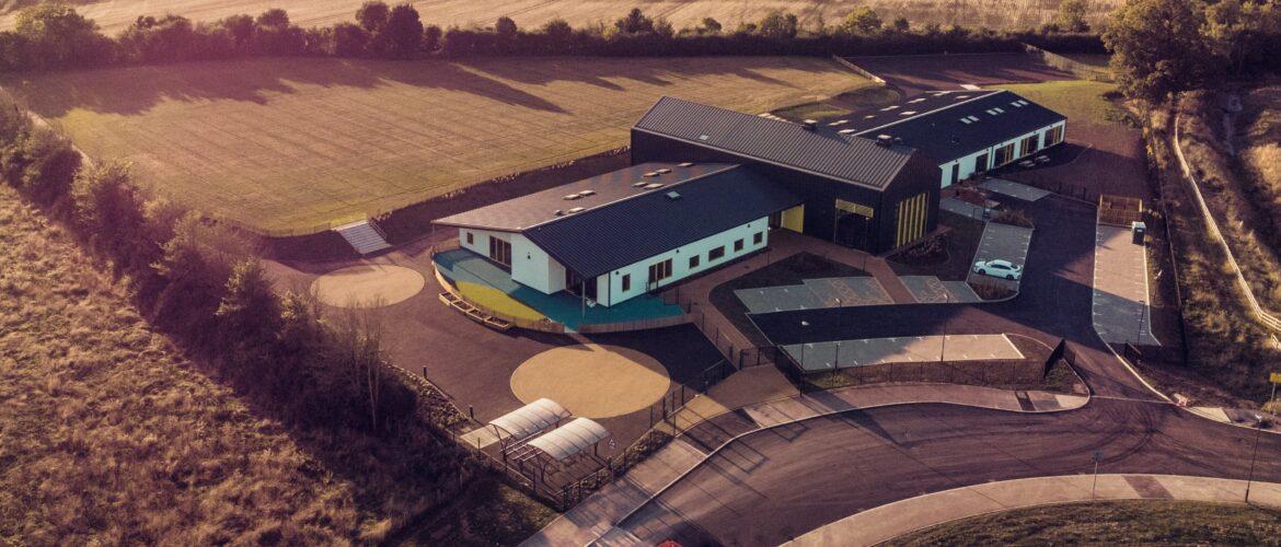 This new build primary school consists of a single storey steel frame with masonry infill walls, precast plank ground floor and built up metal roof sheeting system. The building has a tall central hall and communal area with lower wings on each side providing classroom space. The external facilities include sports pitch and various hard and soft surface areas.